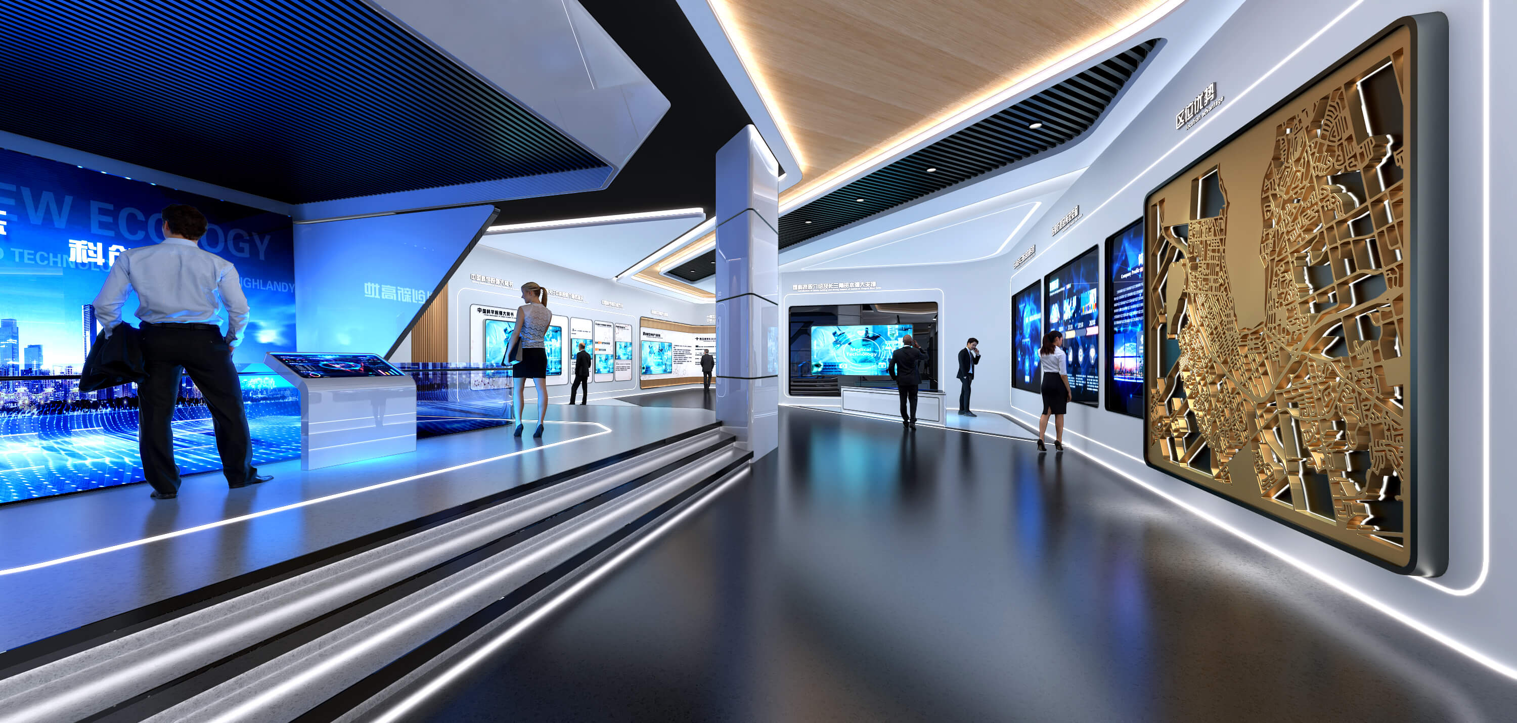 科技企業展廳設計需要從主題氛圍、多媒體展示、產品突出、體驗互動和文化融入等多個方...